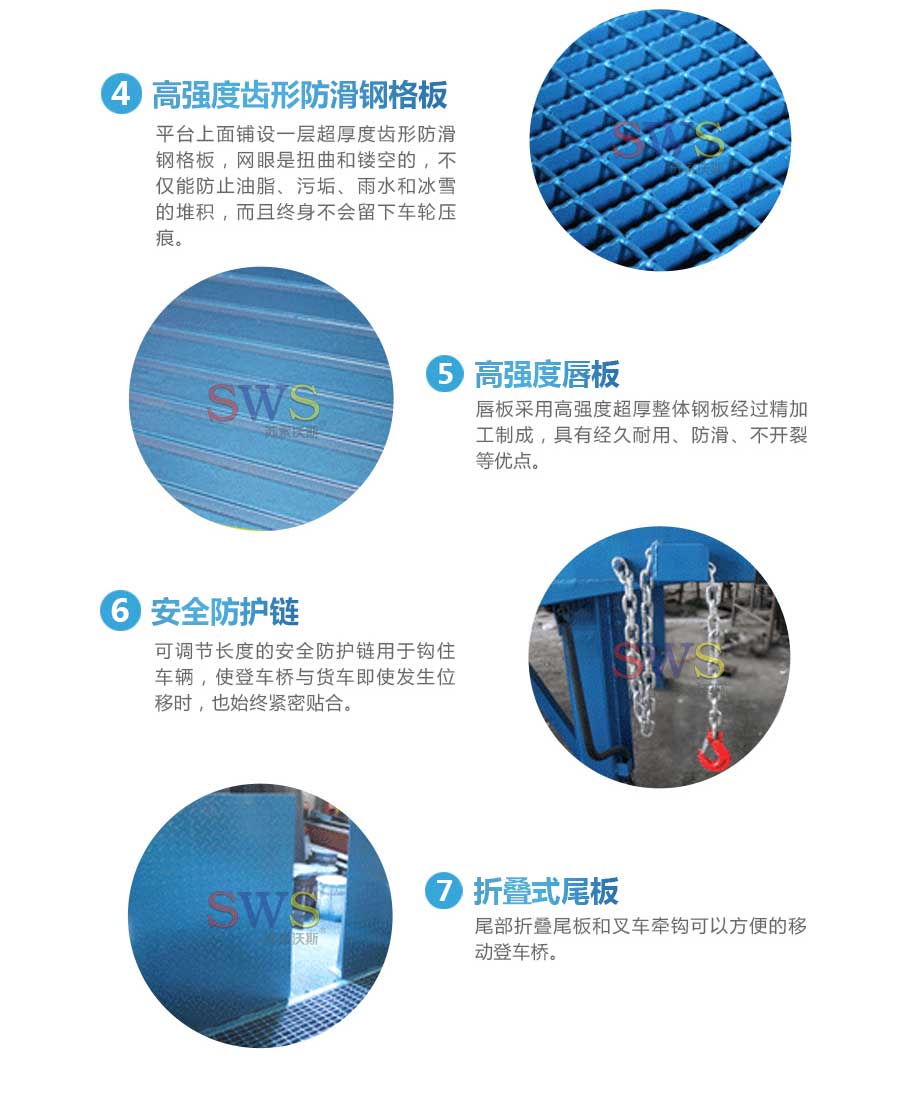 5. 桥体与集装箱连接处有带挂钩的链条,使汽车和登车桥紧密连接,保证工作时的安全可靠性。